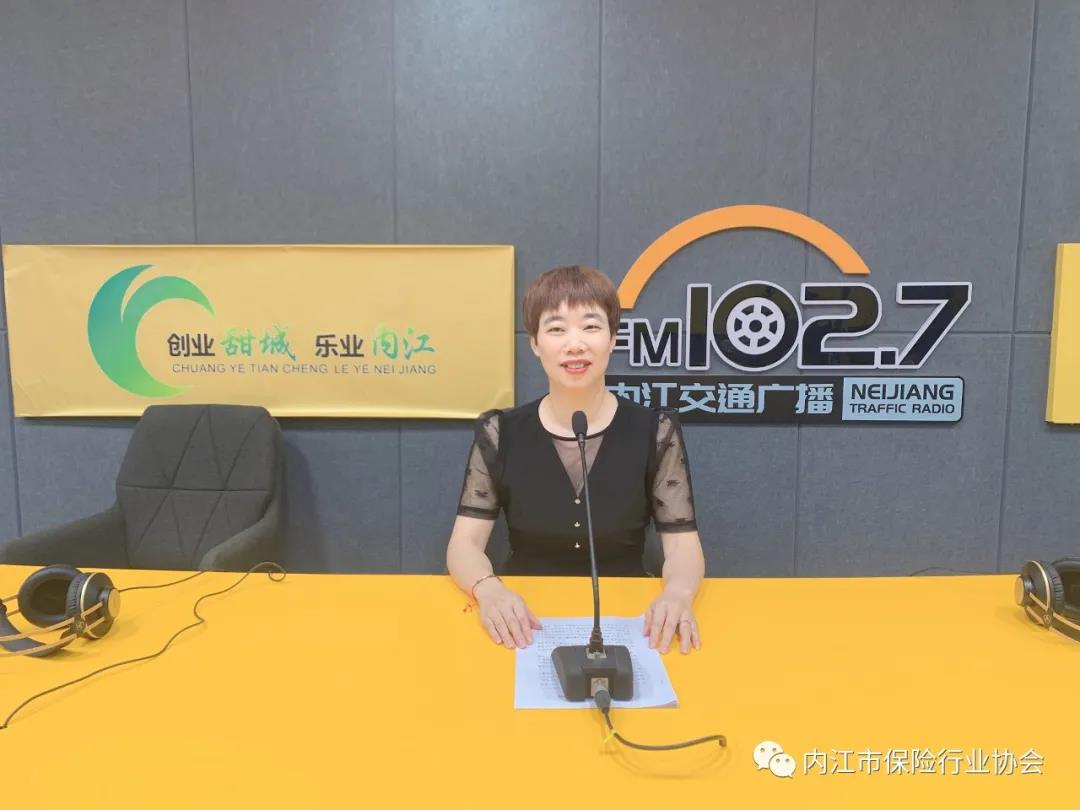 8月17日,内江市保险行业协会副会长、清廉金融文化工作委员会副主任、中华财险内江中心支公司党委书记、总经理孙瑶做客FM102.7内江交通广播“内江保险之声”栏目第五期直播间,畅聊“理赔那些事儿”。