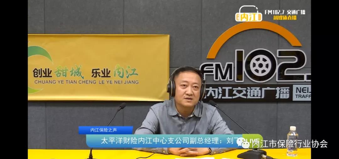 8月26日,内江市保险行业协会车险专业委员会副主任、太平洋产险内江中心支公司副总经理刘飞,做客FM102.7内江交通广播“内江保险之声”栏目第八期直播间,与大家聊聊车险那些事。