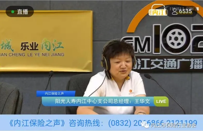 9月23日,阳光人寿保险股份有限公司内江中心支公司负责人王华文做客FM102.7内江交通广播“内江保险之声”栏目第十五期直播间,与大家分享新保险产品及服务提升给社会和个人的保障功用及意义。