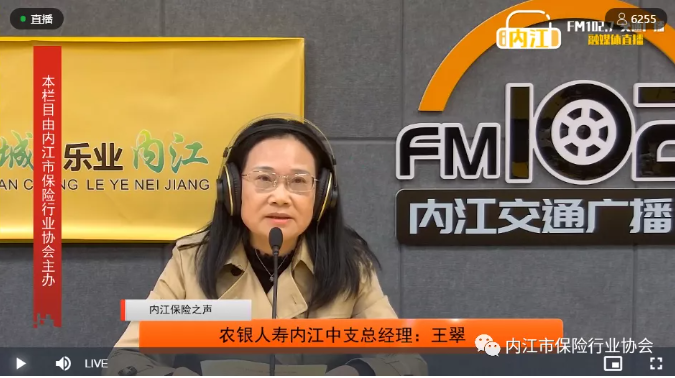 10月12日,农银人寿保险股份有限公司内江中心支公司负责人王翠做客FM102.7内江交通广播“内江保险之声”栏目第十八期直播间,与大家交流分享防范非法集资的知识。