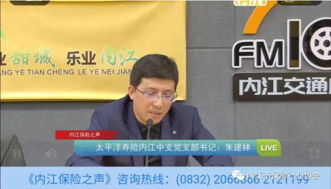 11月16日下午17:00,中国太平洋人寿保险股份有限公司内江中心支公司总经理朱建林作客FM102.7内江交通广播“内江保险之声”栏目第二十八期直播间,与听众朋友们聊一聊“什么是重大疾保险”。