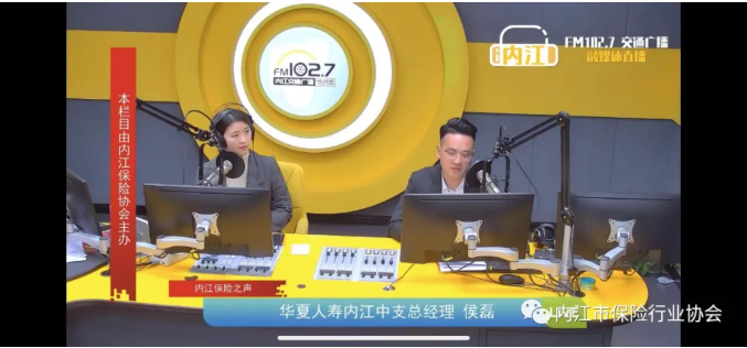 12月14日,内江市保险行业协会理事、华夏人寿保险股份有限公司内江中心支公司总经理侯磊,应邀做客FM102.7内江交通广播“内江保险之声”栏目第三十六期直播间,与广大听众畅谈“当下经济形势对未来保险从业人员带来的影响与变化”的相关问题。