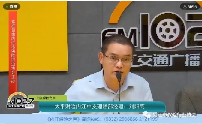 7月19日下午,太平财产保险有限公司内江中心支公司理赔部经理刘阳高做客FM102.7内江交通广播“内江保险之声”栏目第九十三期直播间,与大家畅谈出险后应该怎么做。