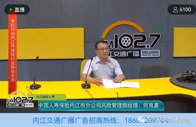 2022年7月14日,中国人寿保险股份有限公司内江市分公司风险管理部经理何良基做客FM102.7内江交通广播“内江保险之声”栏目第九十二期直播间,向内江老百姓传递保险理念,宣传保险知识。