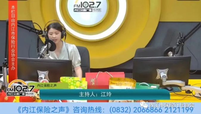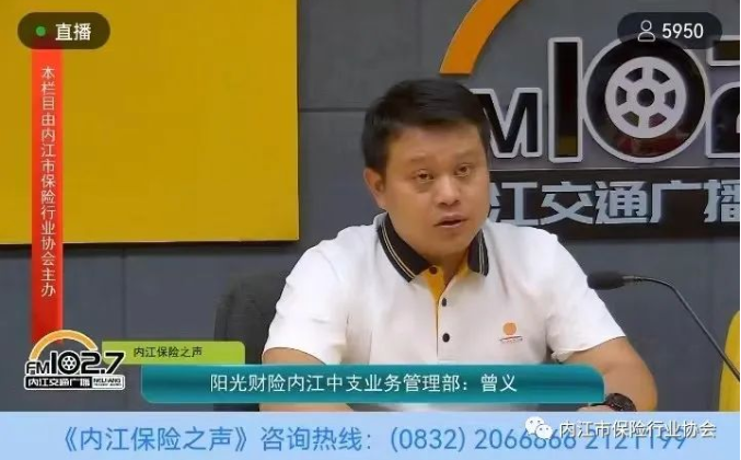 7月5日,阳光财产保险股份有限公司内江中心支公司业务管理部曾义经理做客FM102.7内江交通广播“内江保险之声”栏目第八十九期直播间,与大家一起聊一聊“7.8全国保险公众宣传日”。