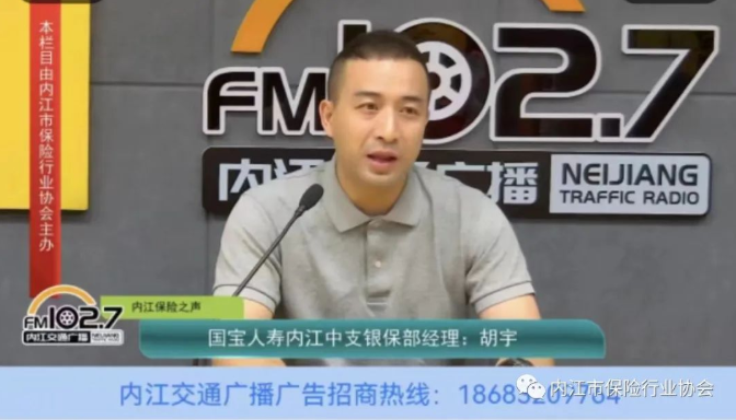 9月1日,国宝人寿保险股份有限公司内江中心支公司银保业务部经理胡宇做客FM102.7内江交通广播“内江保险之声”栏目第一百零六期直播间,与大家分享打击养老诈骗犯罪专项行动。