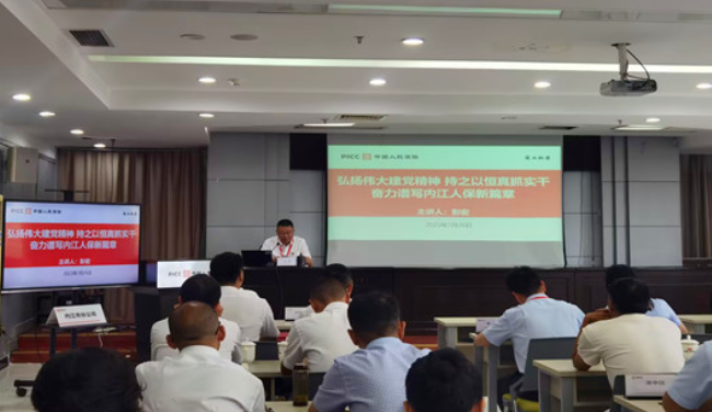 彭宏对“从百年辉煌党史中把握中国共产党人精神谱系”“伟大建党精神是中国共产党人精神谱系之源”“结合内江实际弘扬伟大建党精神”三个方面进行了深入阐释,指导全市员工要弘扬伟大建党精神,进一步端正发展理念,树立和践行正确的业绩观;要持之以恒,锚定目标真抓实干,一张蓝图绘到底。希望全体党员干部员工更深刻领会到“伟大建党精神”科学内涵,持续改进工作作风,敢于斗争、善于斗争,围绕“六大战略服务”,把更多心思和功夫花在狠抓落实上,不搞“业绩工程”,一件事情接着一件事情办,一年接着一年干,不懈怠、不骄傲、一鼓作气、奋勇向前,为奋力谱写内江人保新篇章贡献自己的力量。